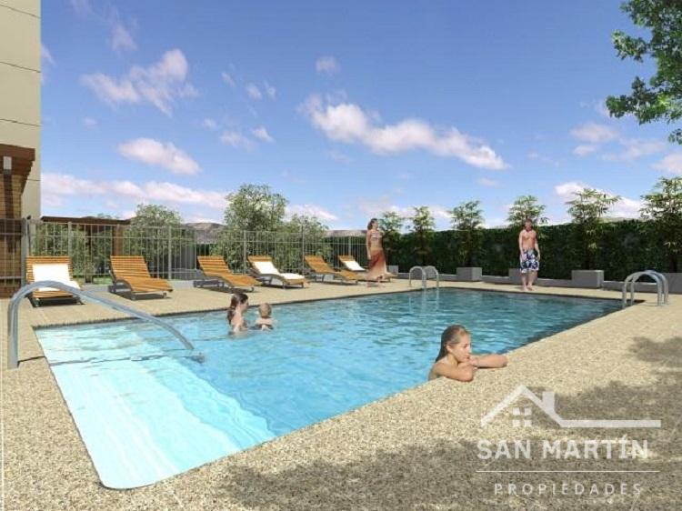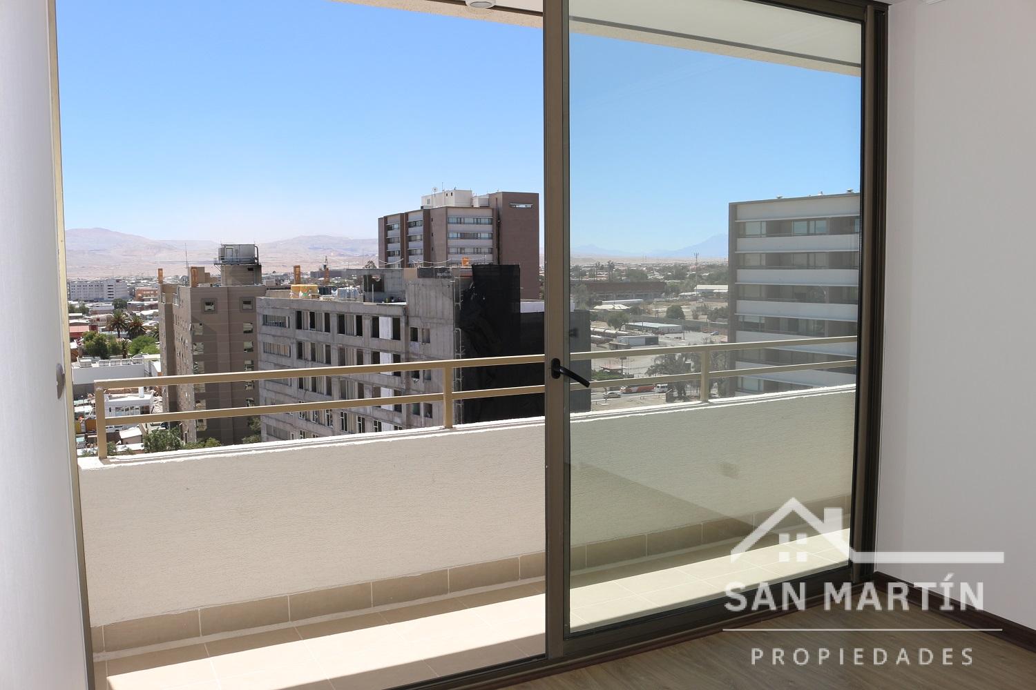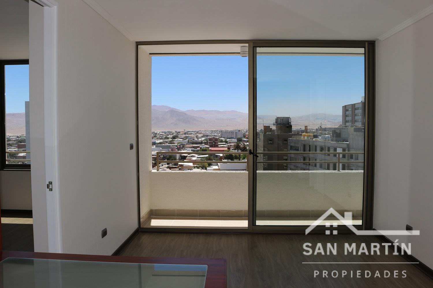 Se vende departamento de dos dormitorios, ambos dormitorios con baño y closet incluido, cocina integrada tipo americana con muebles, living, balcón, bodega y estacionamiento. El edificio cuenta con servicio de conserjería las 24 horas, además posee piscina, gimnasio, estacionamiento para visitas, lavandería. Excelente inversión a pasos del centro de Calama,